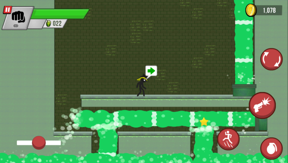 游戏中体现了火柴人游戏的简洁画风,但是却不失打击感,横版的操作界面