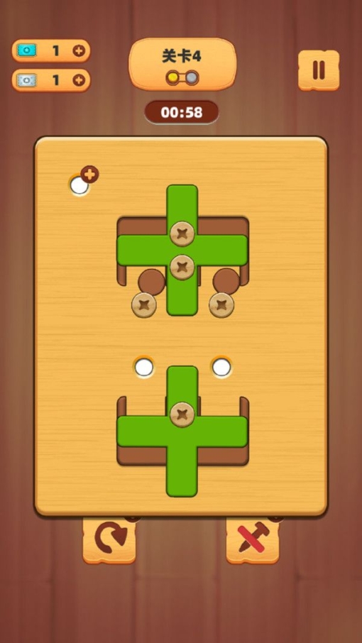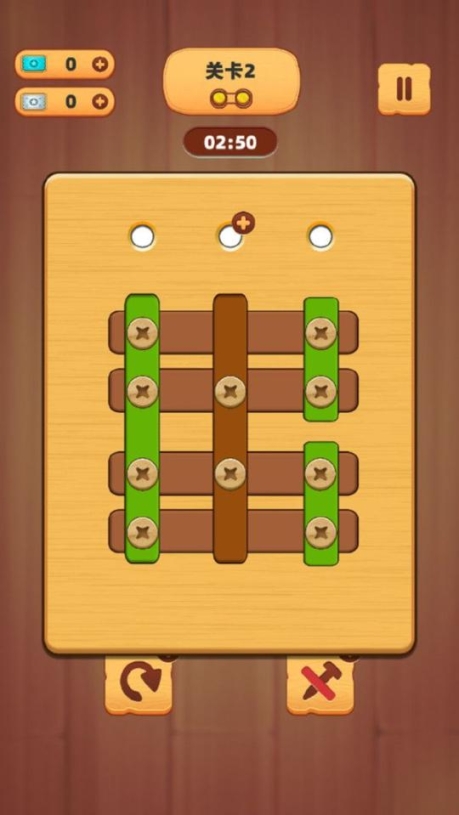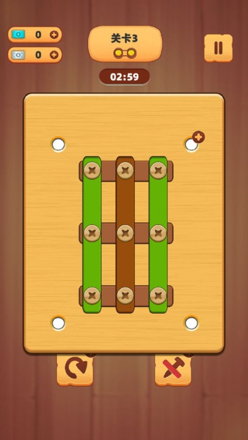 1、趣味拧螺丝,烧脑去闯关,多样的模式设定,继续去挑战。
