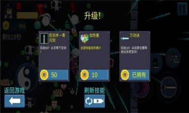1、一念开天门每升一级可随机选择一种技能并生存下去,直到打败Boos;