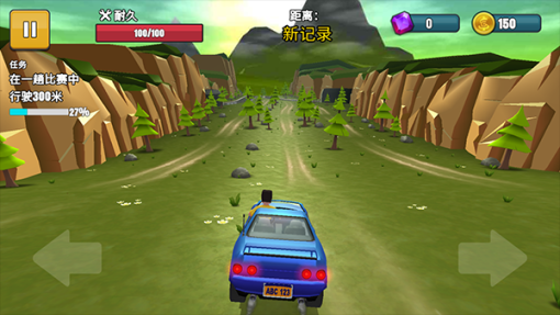 3、没有刹车的操作,一定要小心行驶,不要速度过快,左右转向也不要太急,简单的画面效果设置,大家可以自由的控制赛车加入到趣味的挑战中。