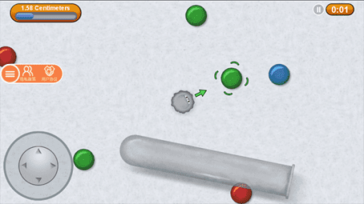 游戏画面很萌,小球球很萌,而且根据最近吃下去的东西的颜色还会改变身体的颜色